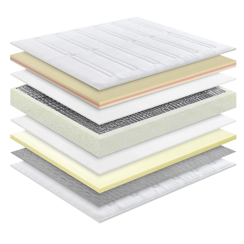 Lapisan kenyamanan atas menggunakan busa memori berketahanan tinggi yang merespons suhu dan berat tubuh.